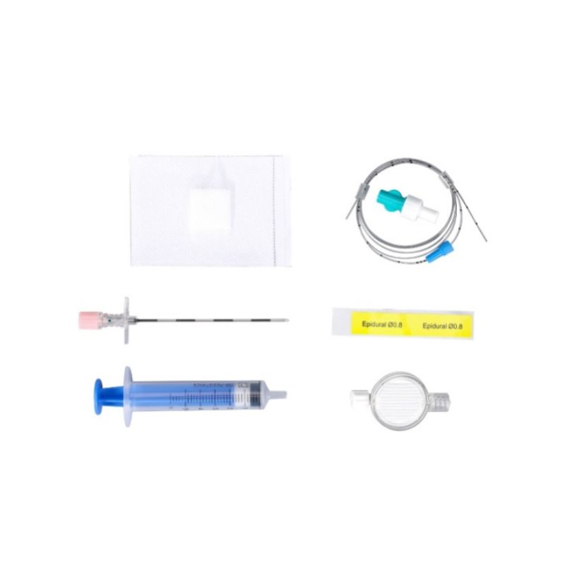 Tá an Kit Ainéistéise Epidural comhdhéanta de shnáthaid epidúrtha, catheter epidúrtha (cineál ginearálta nó cineál athneartaithe), snáthaid isteach, treoir isteach, cónascaire catheter, scagaire leachtach agus steallaire íseal-fhriotaíochta. Úsáidtear é le haghaidh puncture epidúrtha, agus instealladh drugaí leachtacha isteach sa spás epidúrtha le linn ainéistéise epidúrtha.